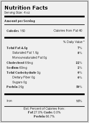 Each: 249 calories; 26 g protein; 20 g carbohydrates; 7 g fat; 6 g